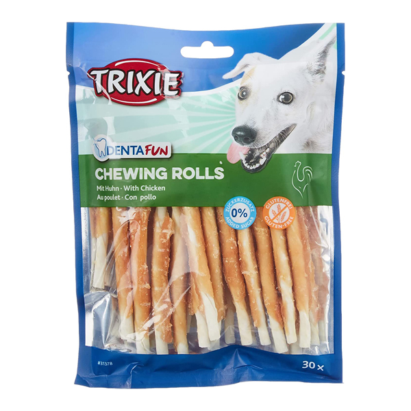 تشویقی سگ از برند محبوب تریکسی با دورپیچ مرغ برای تمامی نژاد ها قابل استفاده است. جویدن این خوراکی خوش طعم به پیشگیری از تشکیل پلاک دندان کمک می کند.