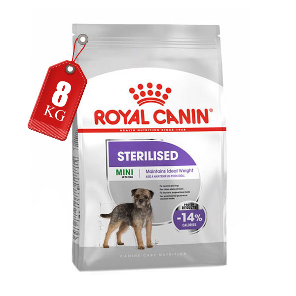 غذای رویال کنین مدل مینی استریلایزد با وزن 8 کیلوگرم برای سگ های بالغ نژاد کوچک عقیم شده تولید شده است. این محصول دارای کالری کاهش یافته می باشد.