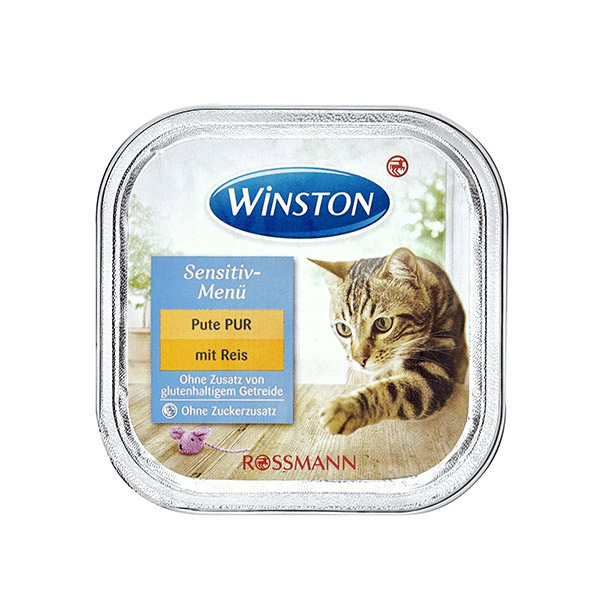 ووم سنسیتیو از برند وینستون برای گربه های بالغ با طعم بوقلمون و برنج تولید شده است. این محصول فاقد گلوتن بوده و به سازگاری خوبی با دستگاه گوارش دارد.