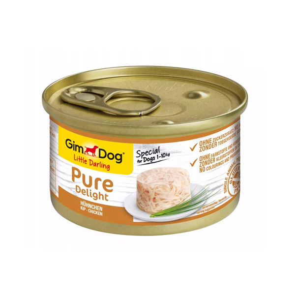 کنسرو جیم داگ با طعم دلپذیر مرغ برای سگ های نژاد کوچک تولید شده است. این محصول میزان پروتئین بالایی دارد و به تقویت و حفظ سلامت عضلات کمک می کند.