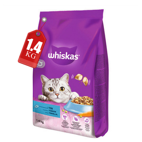 غذای ویسکاس با طعم ماهی تن و سبزیجات برای گربه های بالغ همه نژادها با دانه های مغزدار تولید شده و در بسته های با وزن 1.4 کیلوگرم عرضه می شود.