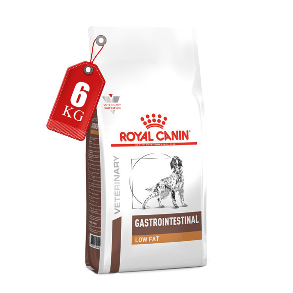 غذای سگ بالغ گسترو اینتستینال از برند رویال کنین مدل لو فت در بسته های با وزن 6 کیلوگرم برای درمان مشکلات گوارشی همه نژادها تولید شده است.
