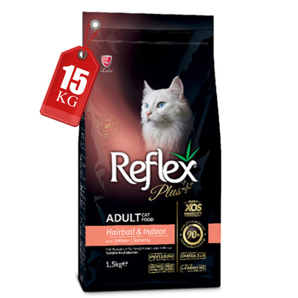 غذای رفلکس پلاس برای گربه های خانگی با خاصیت ضد گلوله مو در بسته های 15 کیلوگرمی تولید شده است. این محصول سلامت دستگاه گوارش را ارتقا می دهد.