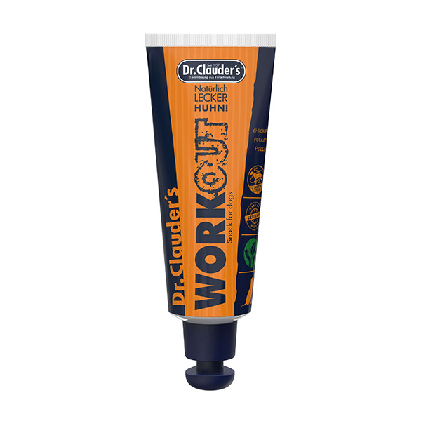 دکتر کلادرز اسنک خمیری Workout Huhn با طعم مرغ را برای همه سگ های بالغ با فرمولاسیون کامل و غنی از از انواع ویتامین ها و مواد معدنی تولید کرده است.