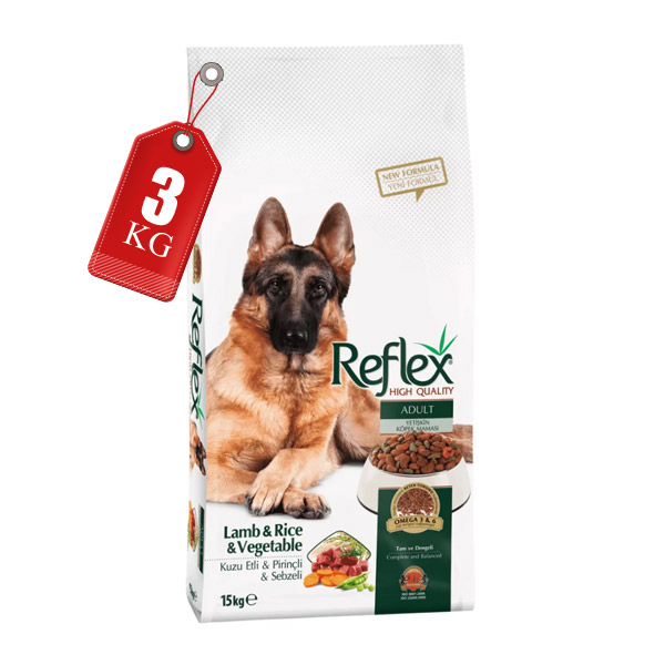 غذای سگ بالغ رفلکس Reflex Adult Dog که با طعم دلپذیر بره ، برنج و سبزیجات تولید شده جذب بالایی دارد و به درخشش پوست و مو کمک می کند.