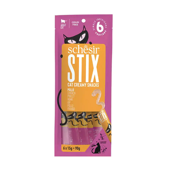 شسیر برای گربه های بالغ بستنی با طعم مرغ Schesir Stix Chicken را با استفاده از پروتئین های طبیعی تولید کرده که یک میان وعده لذیذ و مقوی است.