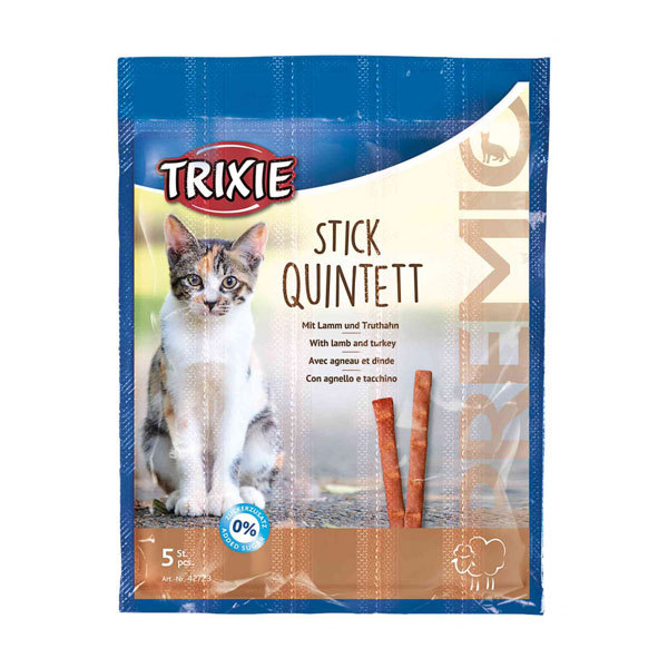 تشویقی مدادی گربه تریکسی Trixie Stick که با طعم بره و بوقلمون تهیه شده است، سرشار از تورین بوده و برای بینایی و عملکرد قلب مفید است.