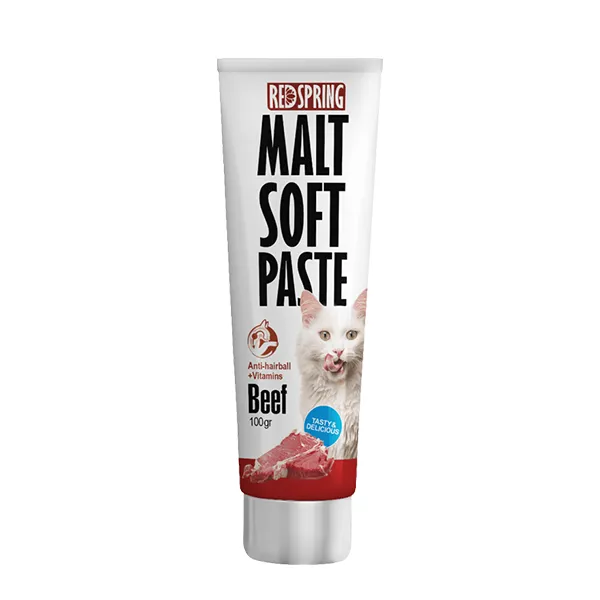 رد اسپرینگ خمیر مالت با طعم بیف Malt Soft Paste Beef را برای همه گربه ها تولید کرده است. این محصول سرشار از سلولز می باشد.