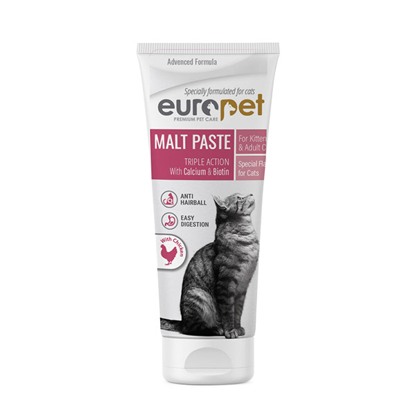 یوروپت خمیر مالت با طعم مرغ Europet Malt Paste with Chicken را برای تمامی گربه ها با فرمولاسیون سرشار از کلسیم، بیوتین و مواد معدنی عرضه می کند.
