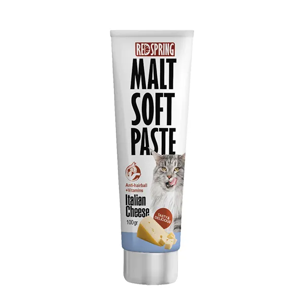 رد اسپرینگ خمیر مالت ویژه گربه با طعم پنیر Malt Soft Paste Cheese را با فرمولاسیون دقیق تولید کرده که برای پیشگیری از تشکیل گلوله های مویی مفید است.