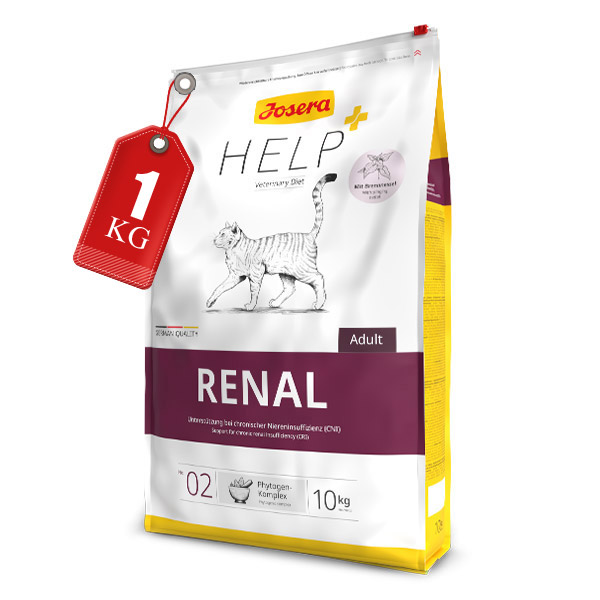 غذای رنال محصولی از جوسرا برای درمان بیماری های کلیوی گربه هاست که در بسته های 1 کیلوگرمی فله عرضه می شود. میزان پروتئین و فسفر این محصول کاهش یافته است.