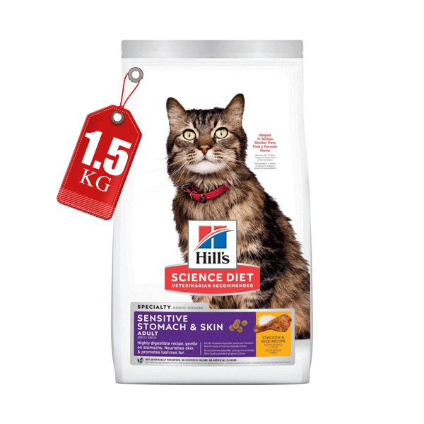 غذای گربه با گوارش و پوست حساس Stomach & Skin هیلز 1.5 کیلوگرم