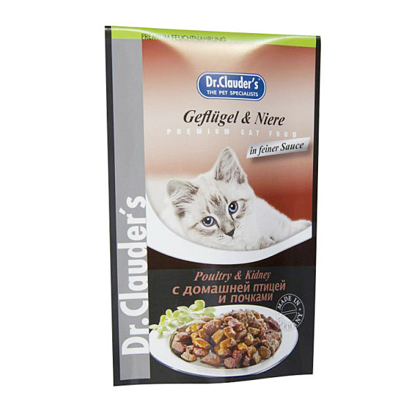 غذای پوچ گربه دکتر کلودرز Geflugel & Niere با طعم فوق العاده لذیذ پرندگان و قلوه تولید شده و برای همه گربه های بالغ قابل استفاده است.