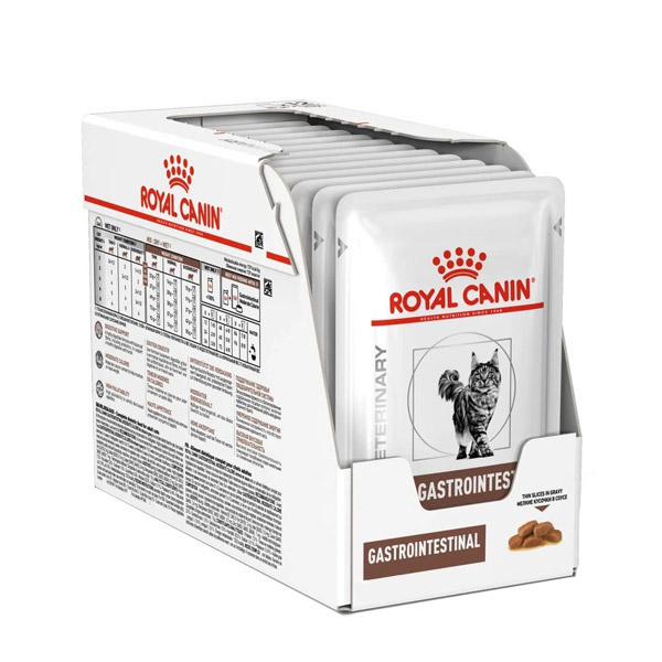 پوچ گسترو اینتستینال رویال کنین Gastro Wet برای گربه های بالغی که به بیماری های گوارشی مبتلا هستند استفاده می شود و خاصیت درمانی دارد.