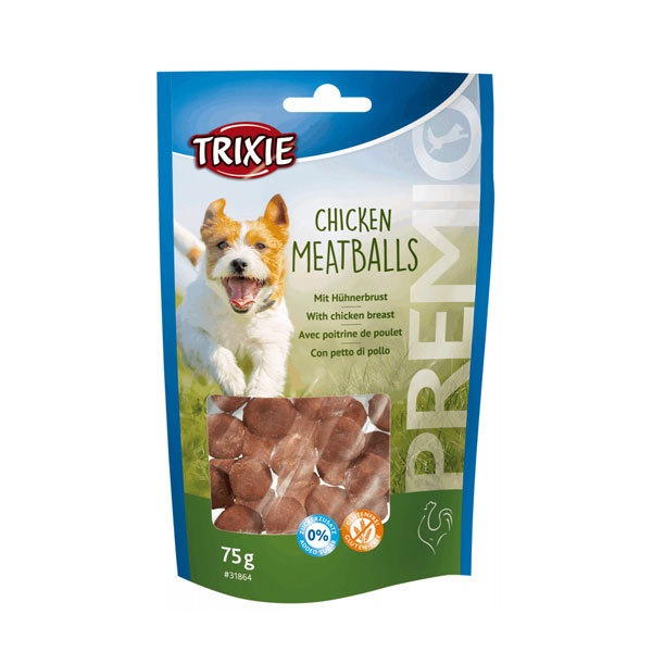 تشویقی توپ مرغ تریکسی یا Trixie Chicken Meatballs برای سگ ها تولید شده است. حاوی میزان بالایی پروتئین بوده و فاقد گلوتن و قند افزوده است.