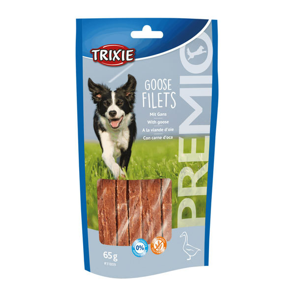 Trixie Goose Filets فاقد گلوتن و قندهای افزوده شده است. در بسته بندی های زیپ دار عرضه می شود که نگهداری از محصول را بسیار آسان کرده و می توان پس از هر بار مصرف به سادگی درب آن را بست.
